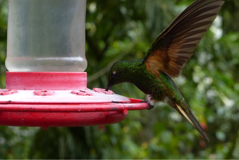 Une fois arrivés, nous sommes subjugués par tous ces colibris et leur plumage coloré qui viennent s’hydrater dans de petits abreuvoirs. C’est parti pour une longue séance photos et vidéos. Un vrai plaisir et un privilège de pouvoir les voir de si près !