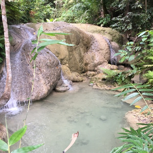 Après quelques minutes de marche, nous tombons sur les magnifiques cascades. Elles ont été aménagées par des artistes de la région. On ne s’y baigne malheureusement pas car on n’a pas vraiment chaud... mais la couleur de l’eau est magnifique.