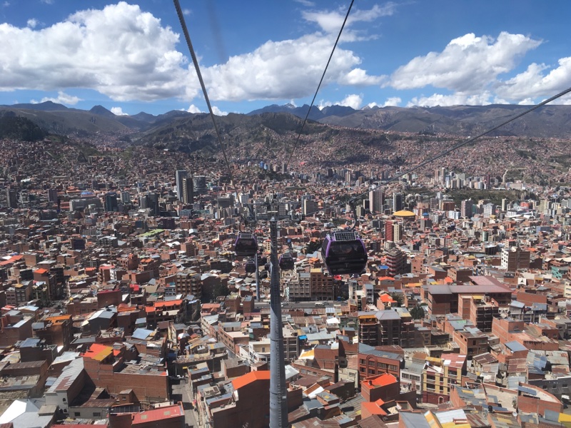 Nous nous installons au soleil de longues minutes puis reprenons notre marche en direction d’une station de téléphérique. Et oui, ici pas de métro, mais de nombreuses cabines qui desservent toute la ville. Très pratique ! Cela nous donne un peu le vertige mais c’est une expérience incroyable de pouvoir survoler toutes ces habitations !