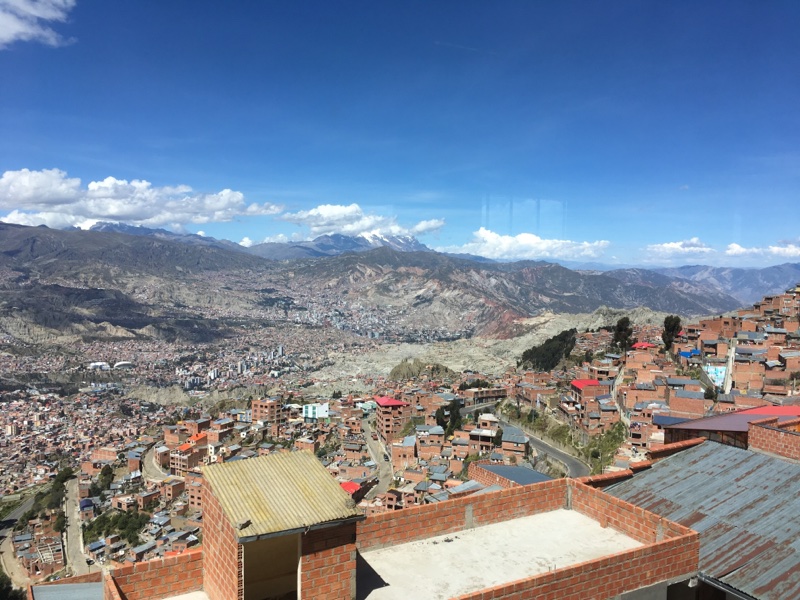 Après cette petite aventure, nous voici dans la grande ville de La Paz, en fin d’après-midi. Elle est située à 3600m d’altitude, ce qui fait d’elle la capitale administrative la plus haute du monde.